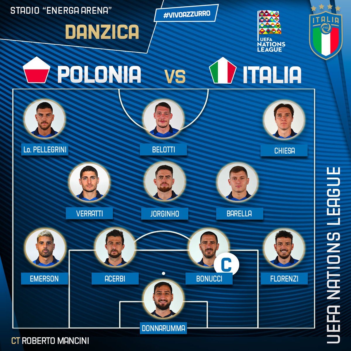 Buona prova degli #Azzurri, contro una solida #Polonia a #Danzica.#POLITA #Nazionale #VivoAzzurro pic.twitter.com/WOfhmHIoXf— Nazionale Italiana (@Vivo_Azzurro) October 11, 2020